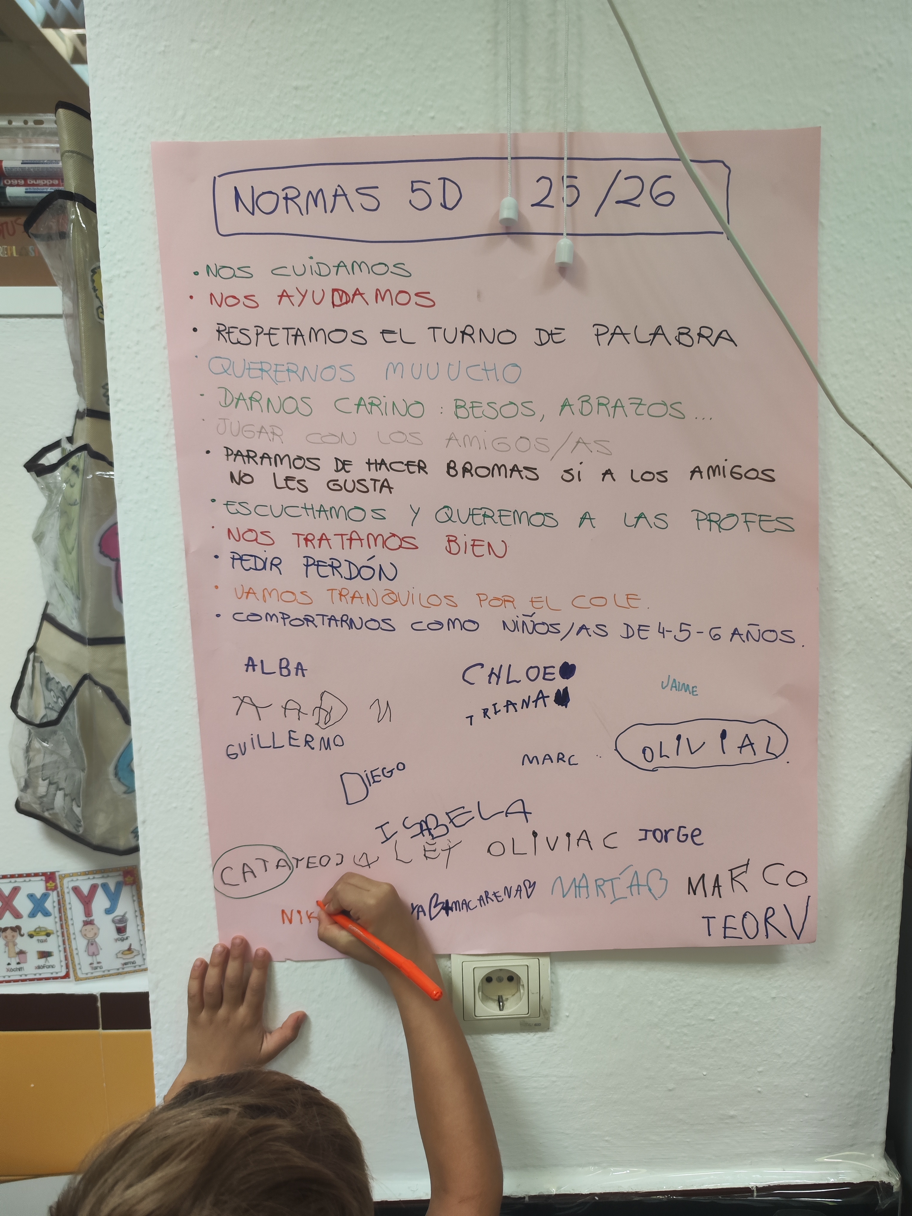 Luego, hemos elaborado las normas que nos comprometemos todos a cumplir, ya que las hemos pensado y acordado juntos.