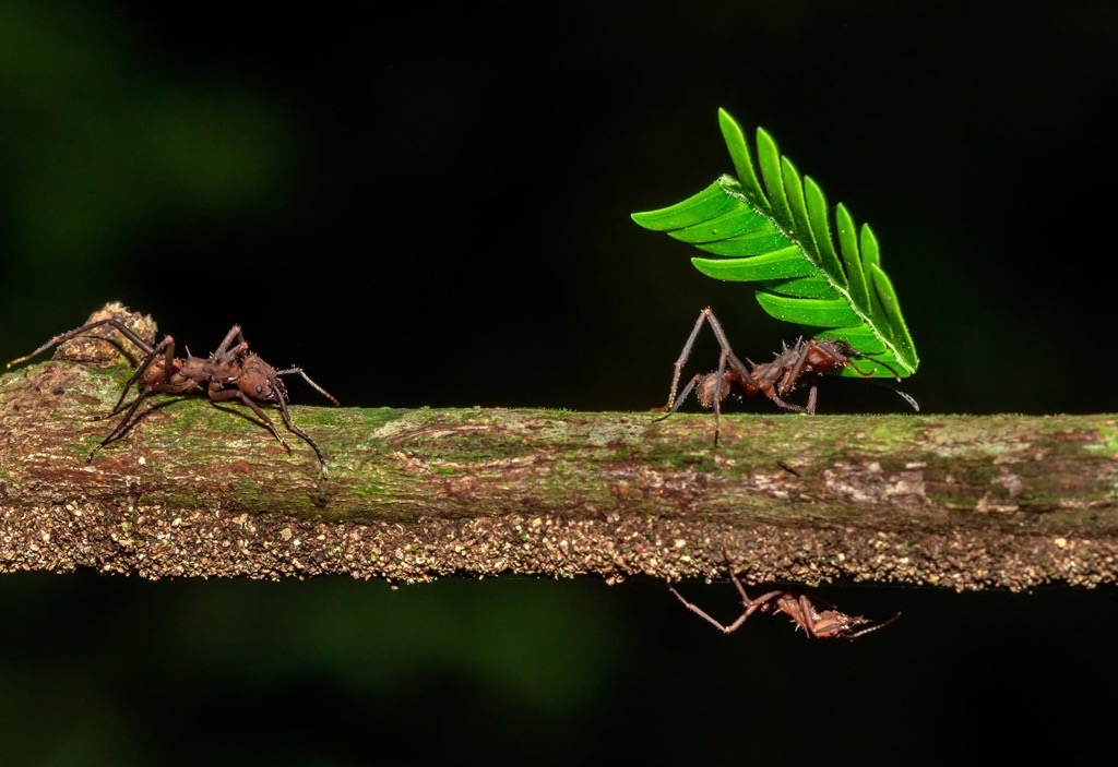 La obra de Miguel, titulada «Con nocturnidad», recoge con una gran precisión y belleza cómo las hormigas cortadoras de hojas llevan a cabo su tarea en Tambopata, en la Amazonía peruana.