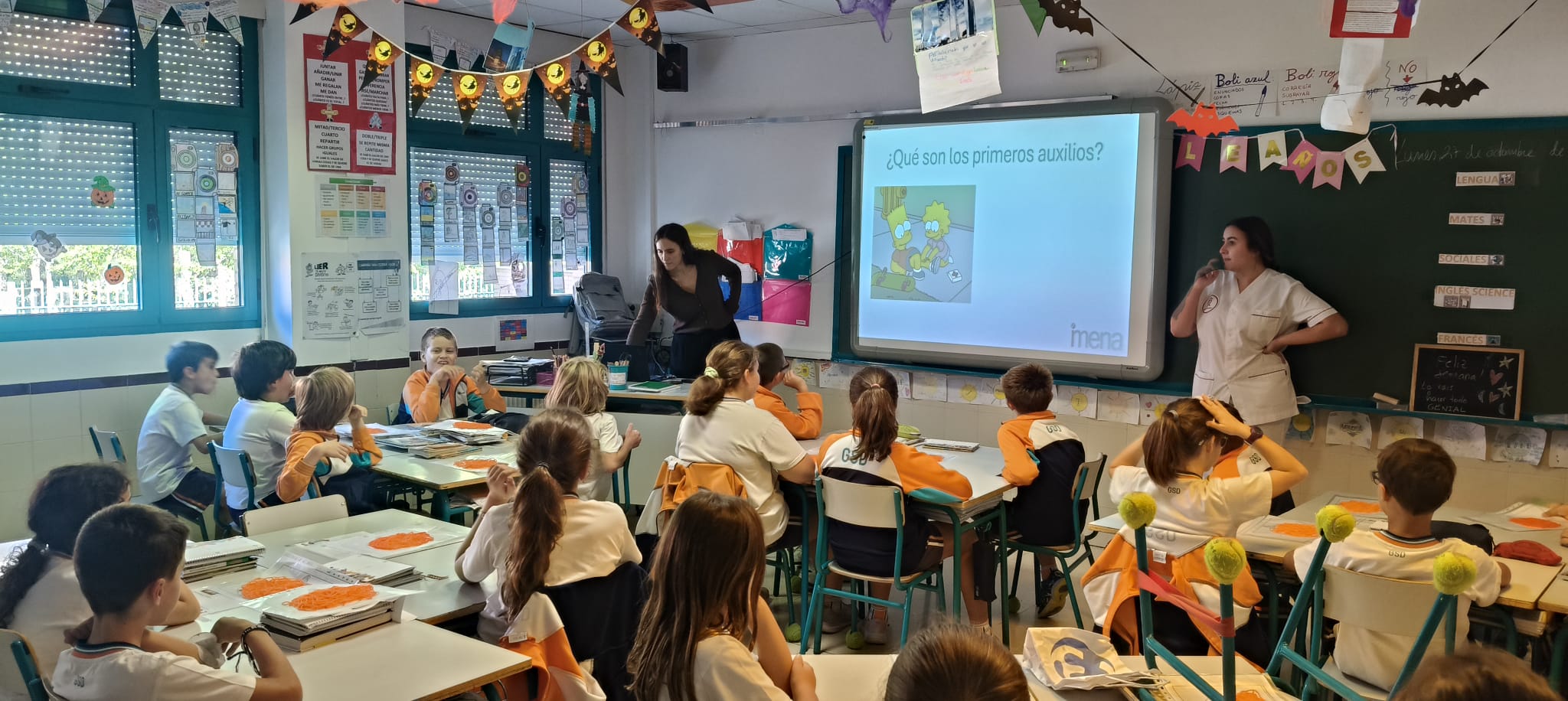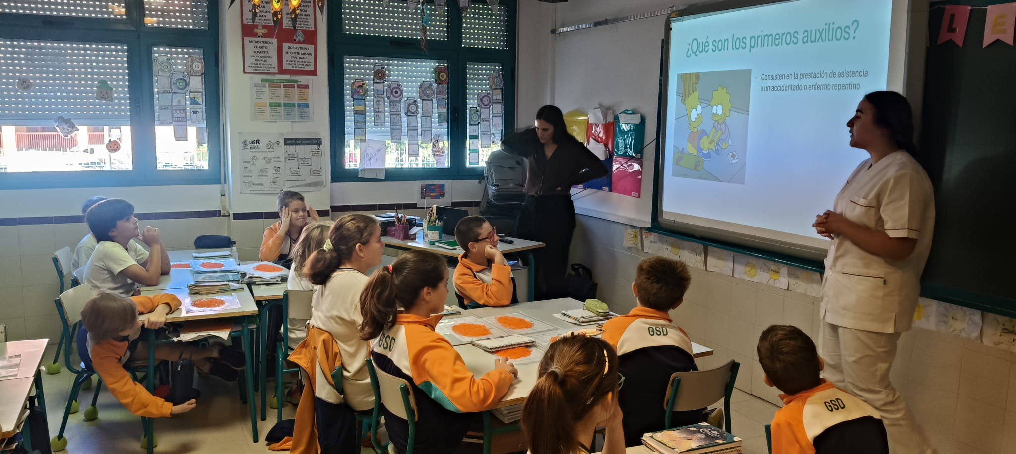 Hoy hemos vivido una jornada diferente y muy especial en los cursos de 4º de Primaria. Hemos recibido la visita de dos doctoras que han venido al colegio para enseñarnos nociones básicas sobre primeros auxilios.