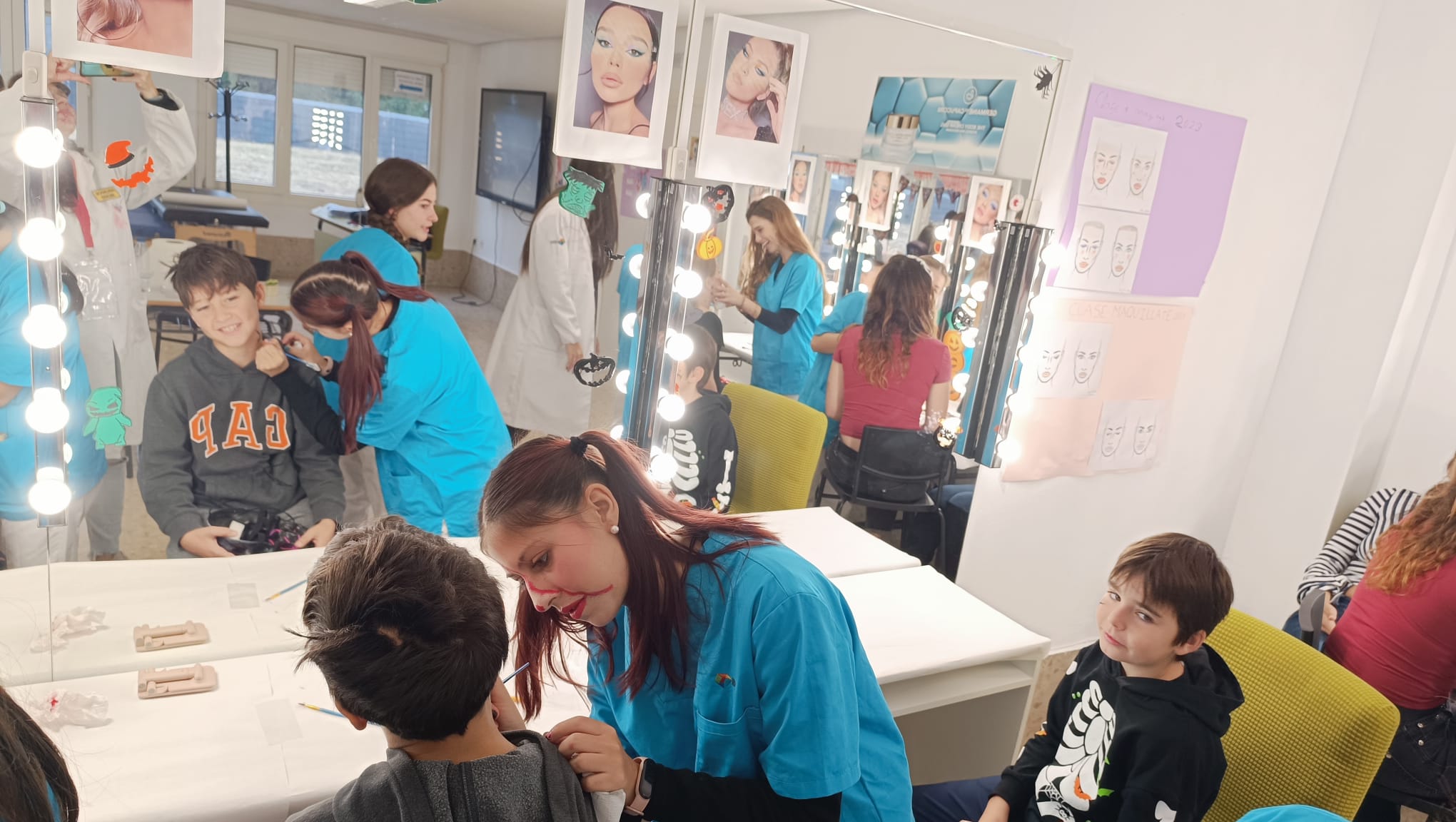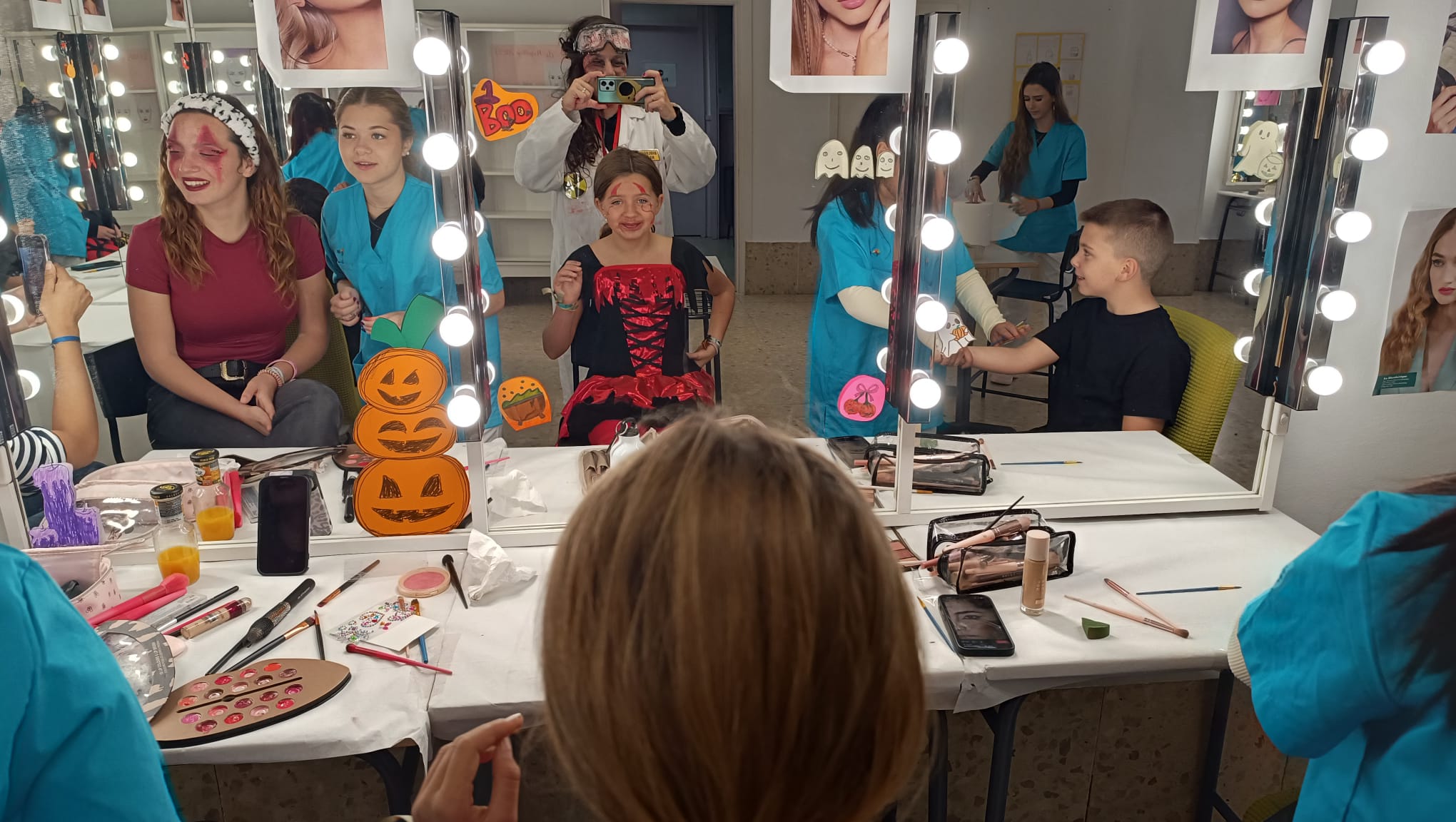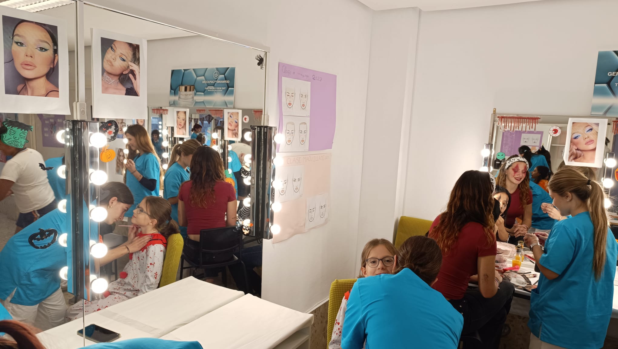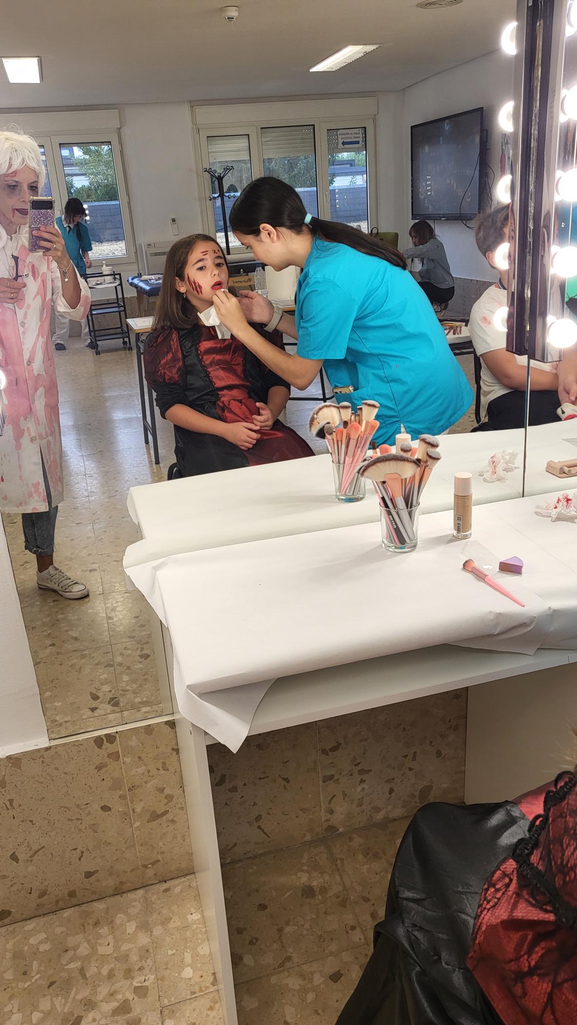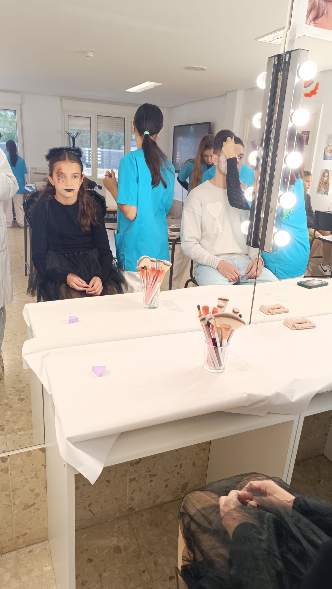 Las alumnas de Estética nos maquillaron y nos dejaron espectaculares: hubo vampiros, brujas, zombis y hasta algún fantasma despistado.