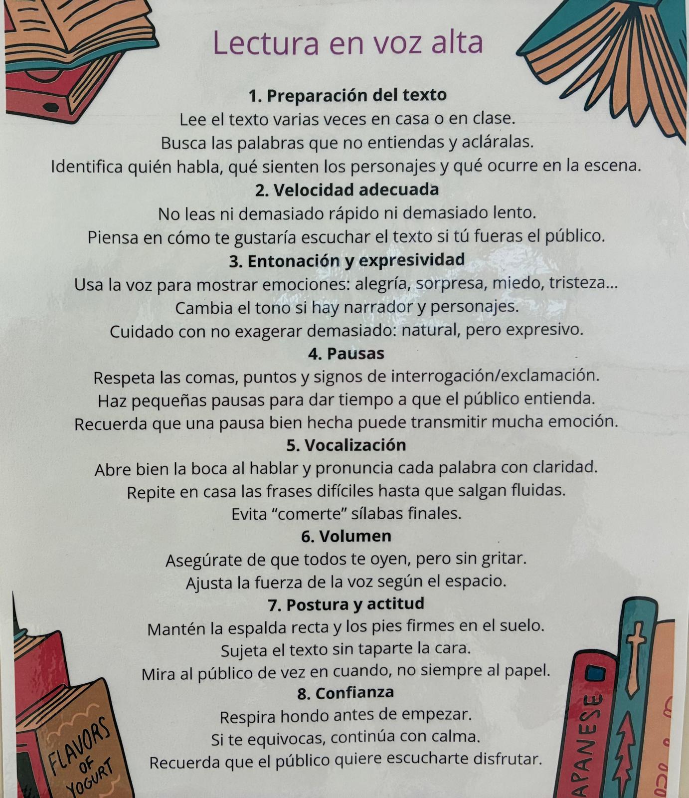 Durante la jornada, los mayores acompañaron a los estudiantes de 4º de Primaria en una sesión de lectura en voz alta, guiándolos, animándolos y ofreciéndoles consejos para mejorar la entonación, el ritmo, la pronunciación y la seguridad frente al público. Fue una experiencia enriquecedora para ambos grupos: los alumnos de 4º disfrutaron leyendo y aprendiendo, mientras que los de 6º demostraron una gran responsabilidad.