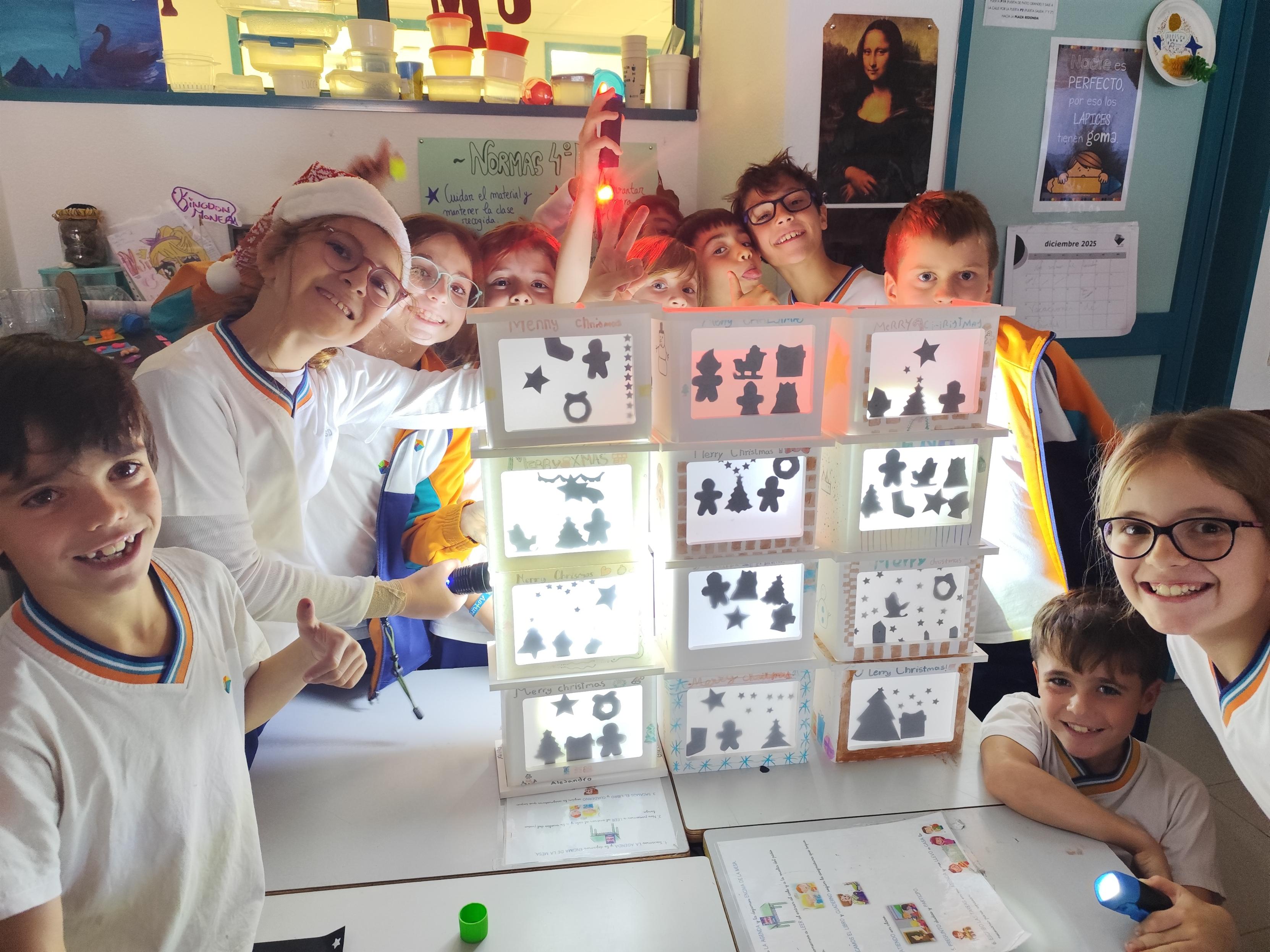 Durante la actividad, el alumnado disfrutó diseñando siluetas navideñas, recortándolas y creando un pequeño teatro de sombras con luz y cartulina. Fue una experiencia artística, divertida y muy especial que llenó el aula del espíritu de la Navidad.