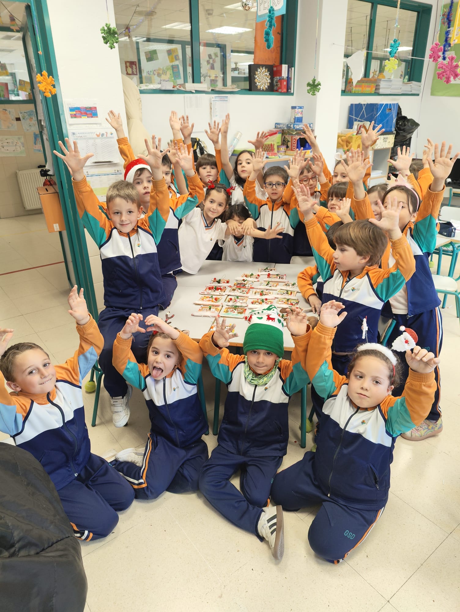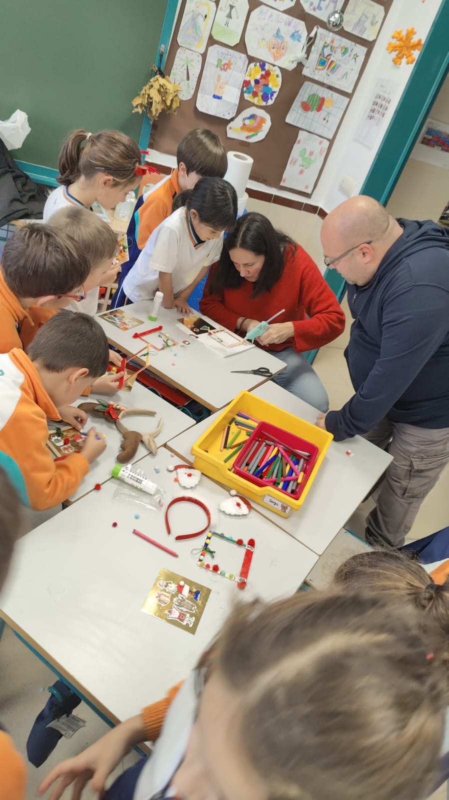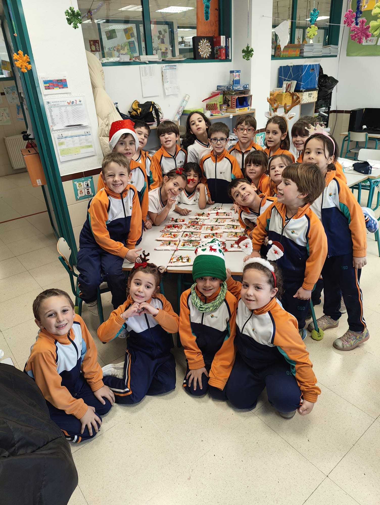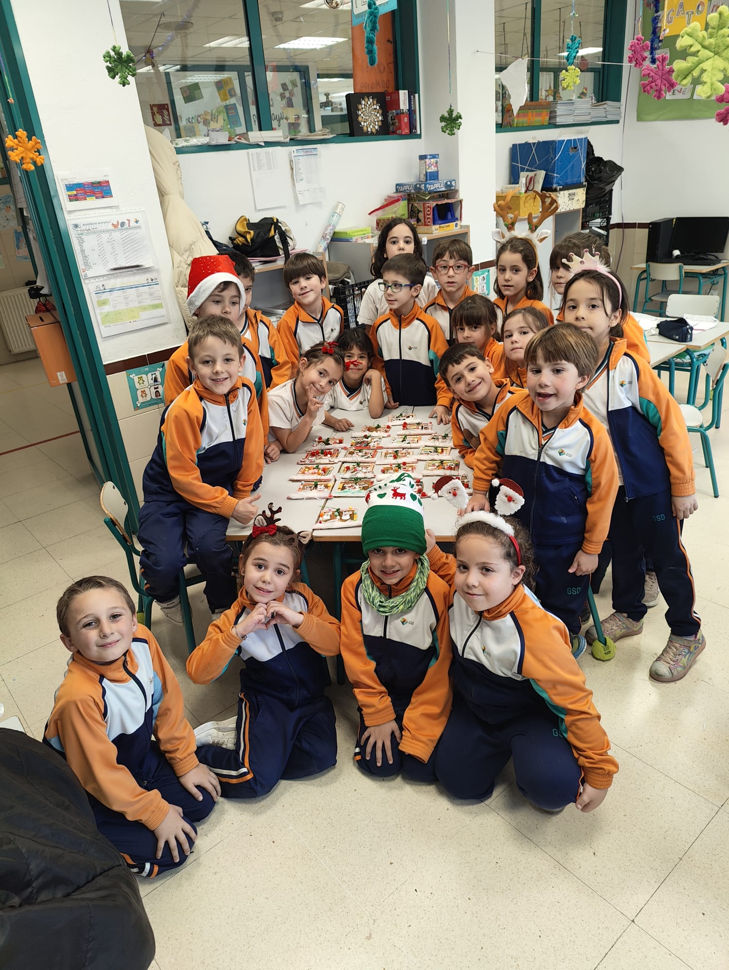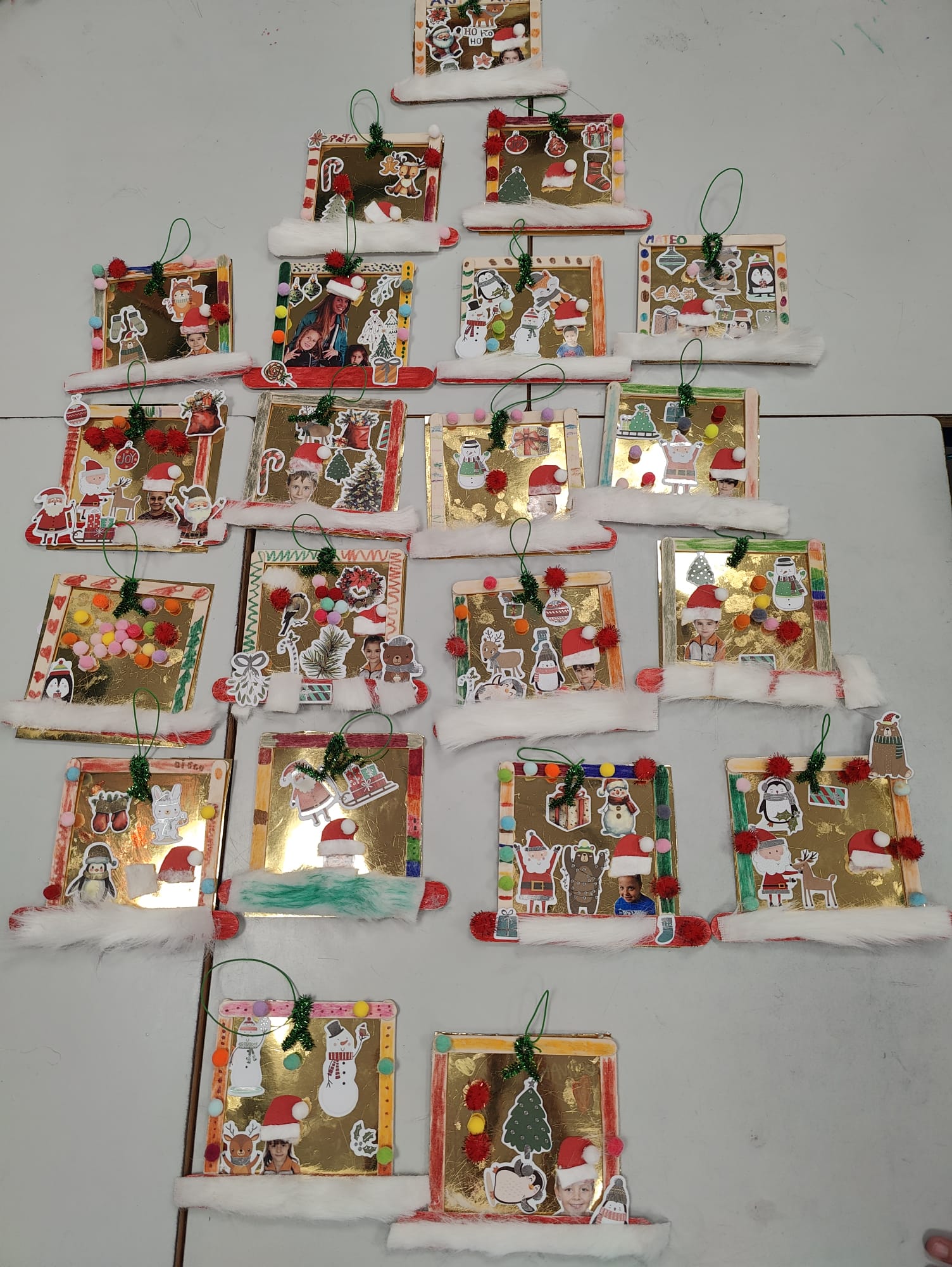 La mamá de Ángel Rubio, la mamá de Héctor Crespo y el papá de Álvaro Ruiz han preparado una manualidad navideña preciosa: un adorno para el árbol en forma de ventana, con decoración navideña y la foto de cada alumno.