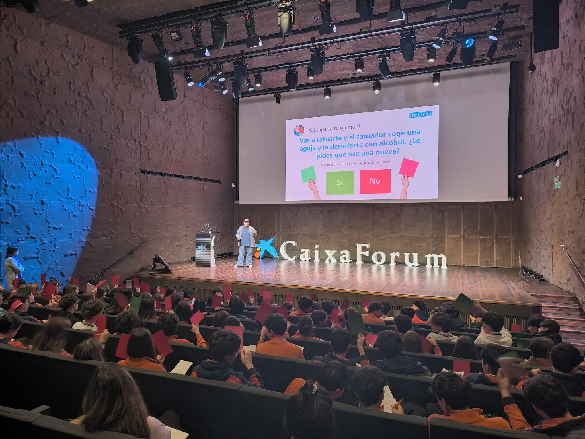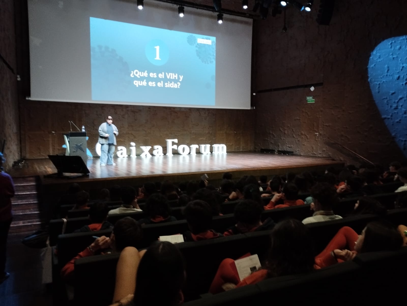 El pasado lunes 19 de enero, los alumnos de 4º ESO acudieron a CAIXAFORUM para asistir a la conferencia ¿Qué sabes del VIH/SIDA? Divulgando investigación y fomentando la prevención. Una investigadora de IrsiCaixa expuso el estado actual de la enfermedad y su investigación, e invitó al alumnado a cuestionarse y debatir estas preguntas. Finalmente, tuvimos la suerte de poder disfrutar de la intervención de otra persona que aportó una perspectiva muy diferente e impactante sobre el VIH/sida.