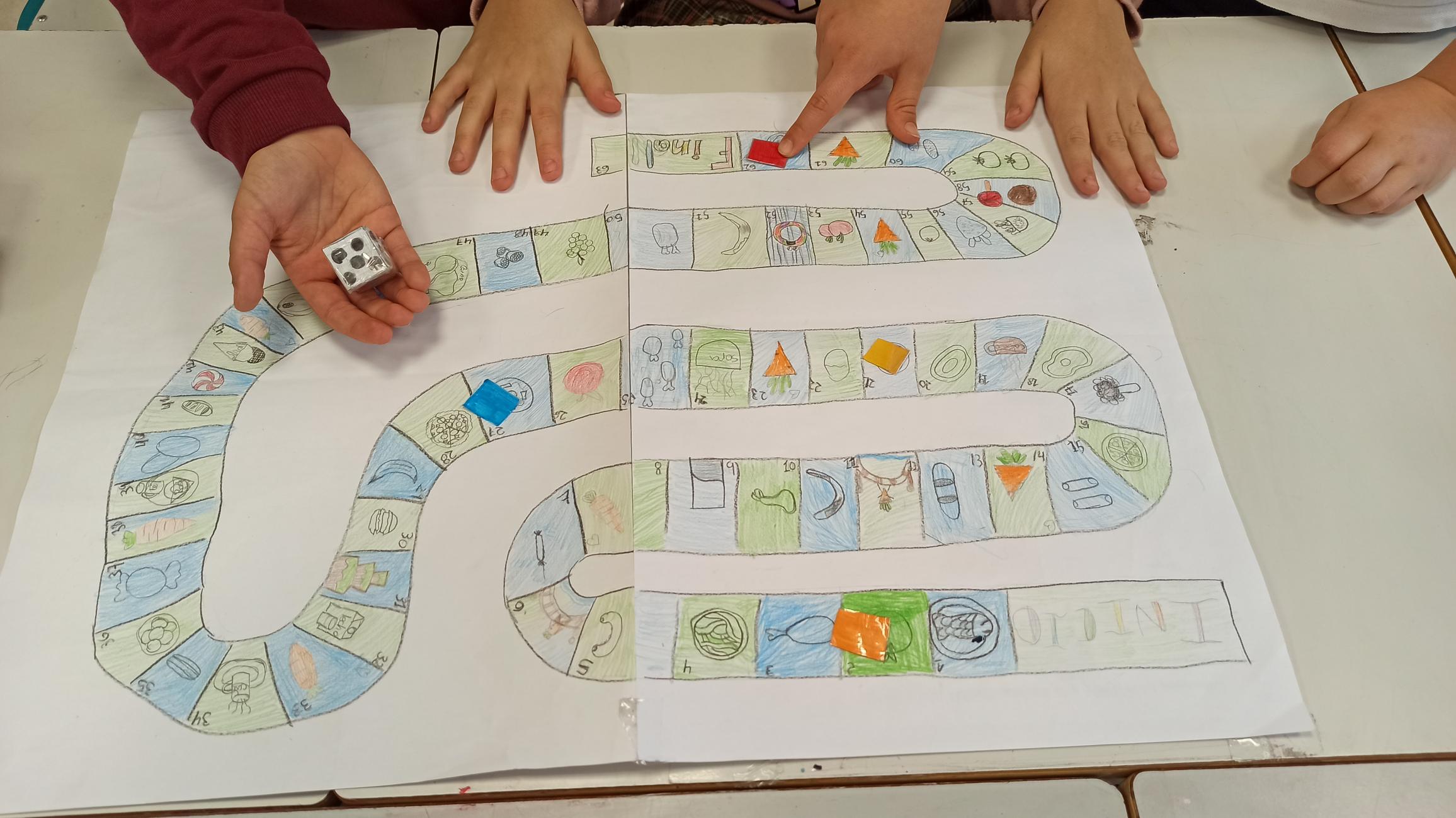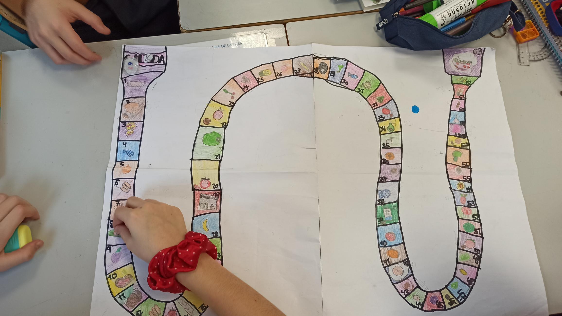 Como parte del proyecto, los niños y niñas diseñaron su propio tablero del “Juego de la Oca”, adaptado al tema de los hábitos alimentarios.