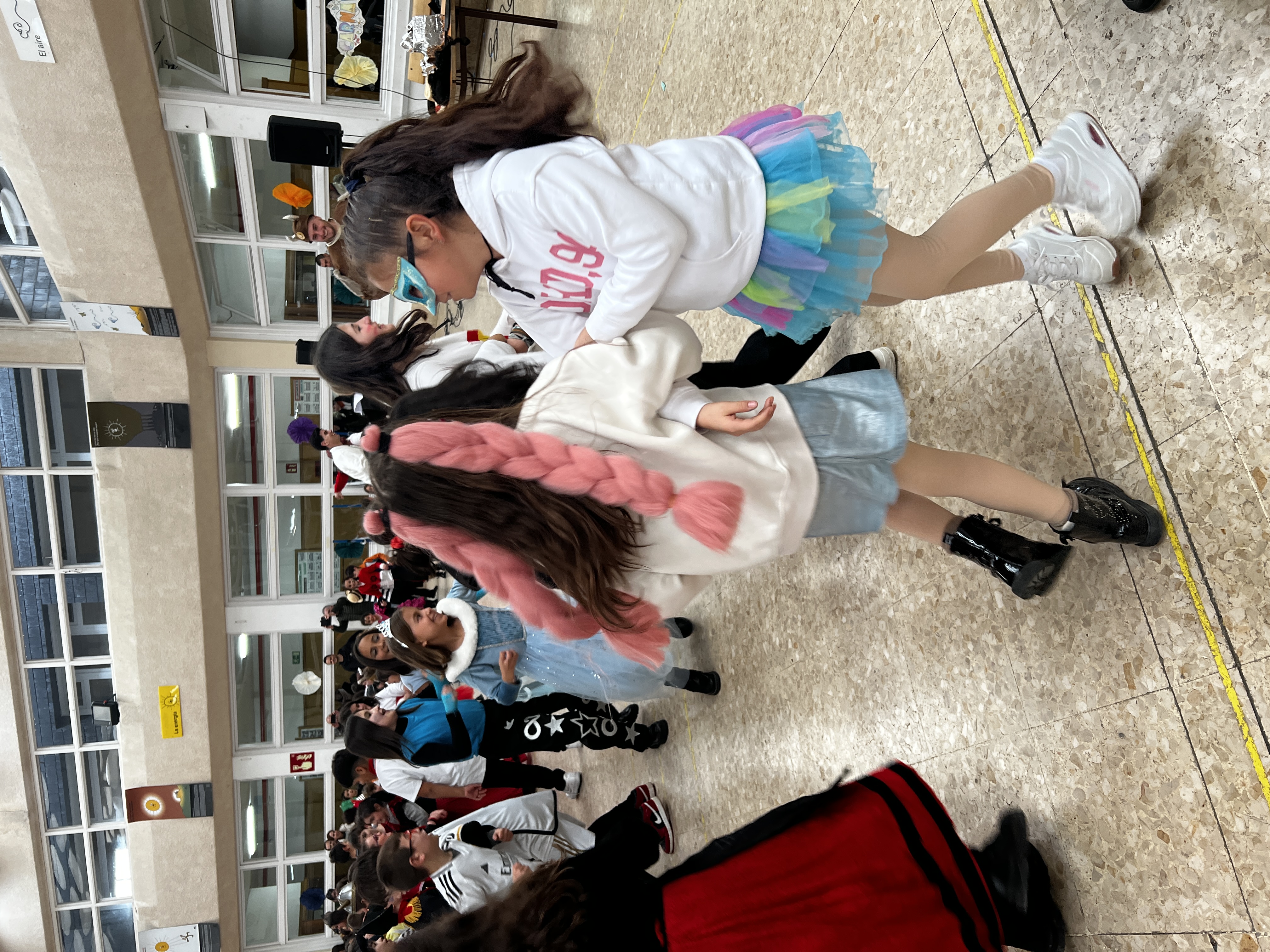 Después llegó uno de los momentos más esperados: el desfile en el sambódromo. Cada clase mostró sus disfraces con creatividad, ritmo y muchísima ilusión. Los jueces lo tuvieron muy díficil para entregar los diplomas, ¡vaya nivelazo! Durante la tarde también disfrutamos de distintos juegos junto a nuestros compañeros y familias. Hubo sonrisas, retos y mucha participación por todo el patio.