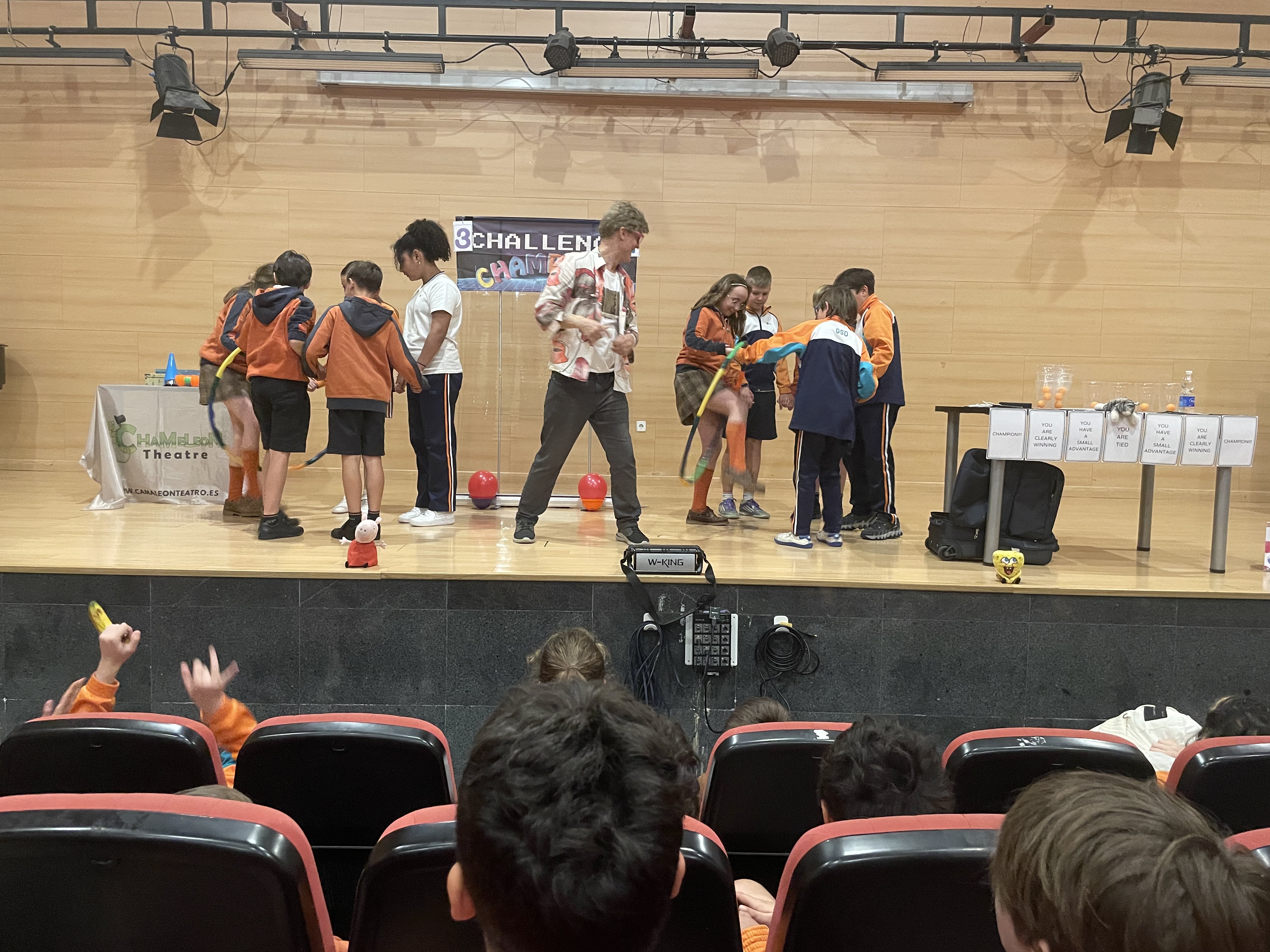 Ayer lunes comenzamos la semana con una actividad en inglés a cargo de la compañía «Chameleon theatre» llamada Challenge Champions.