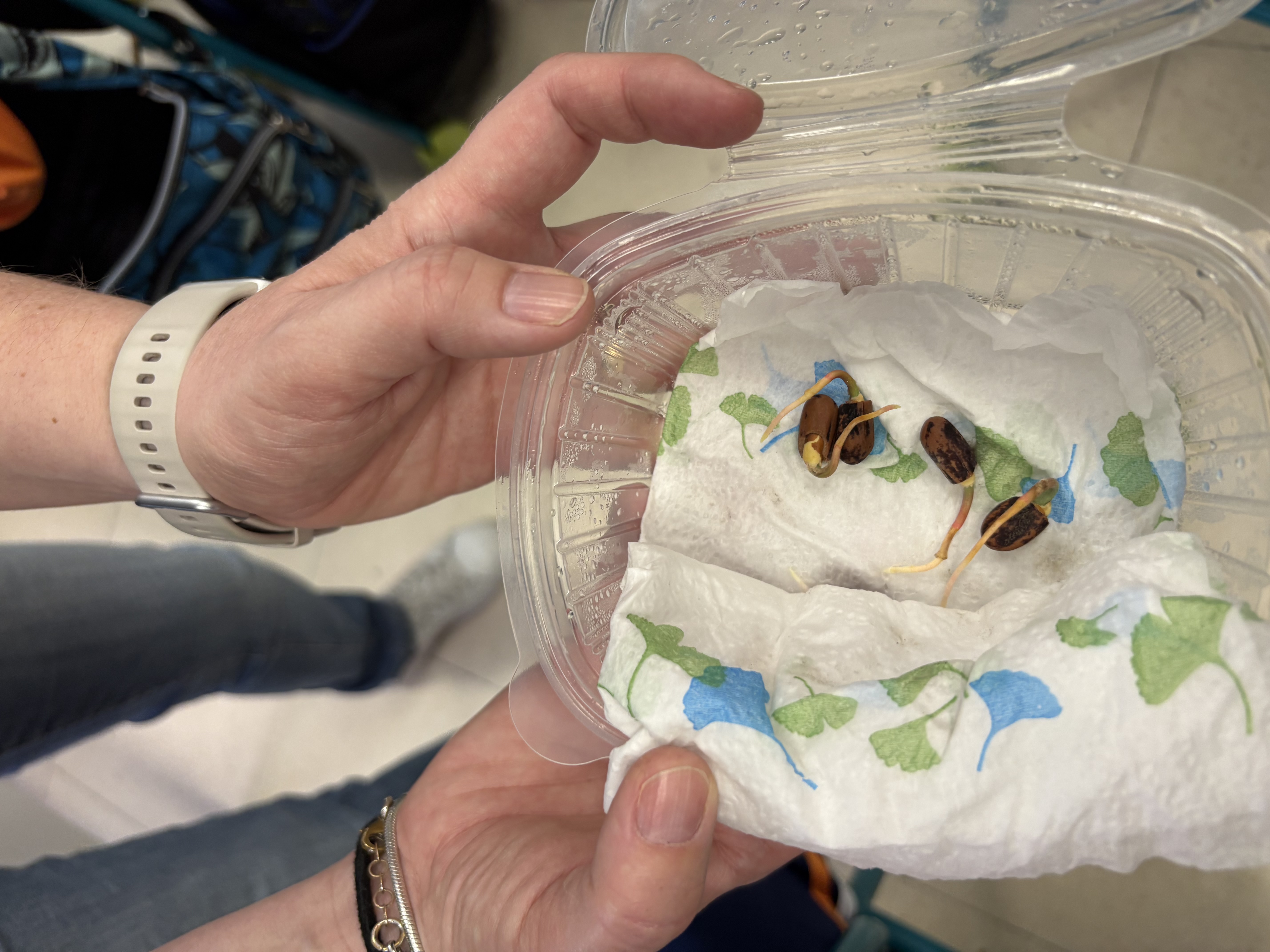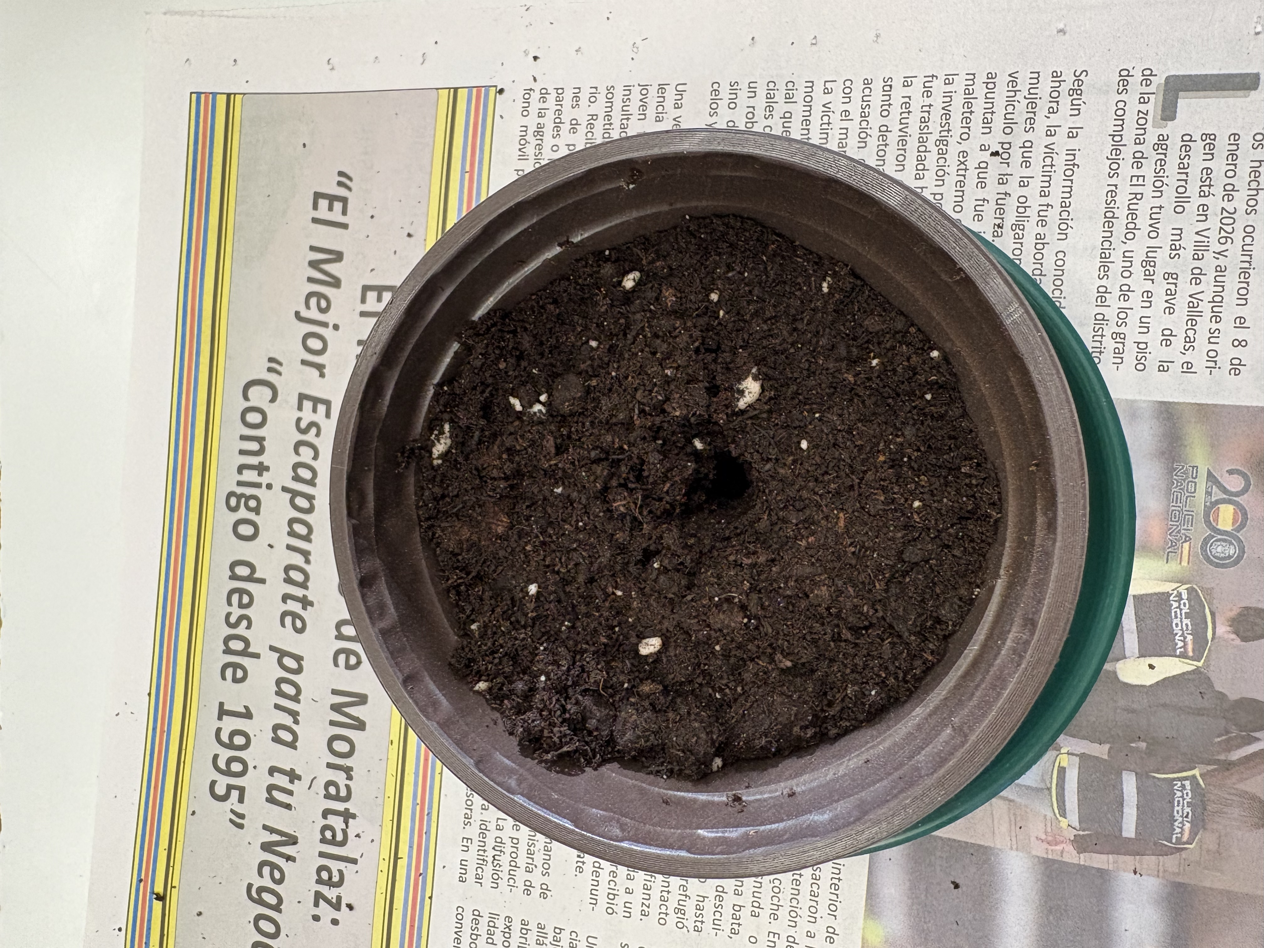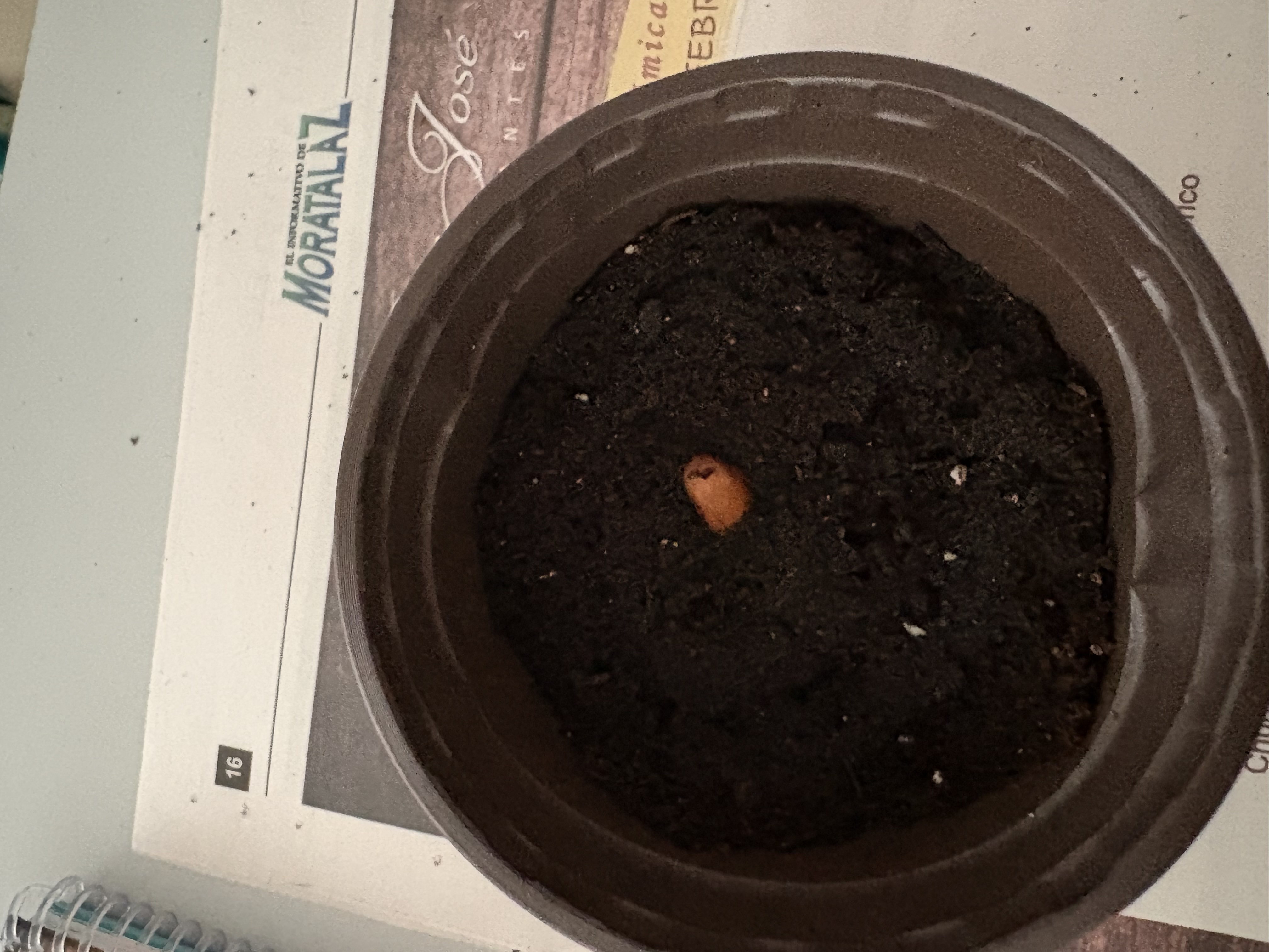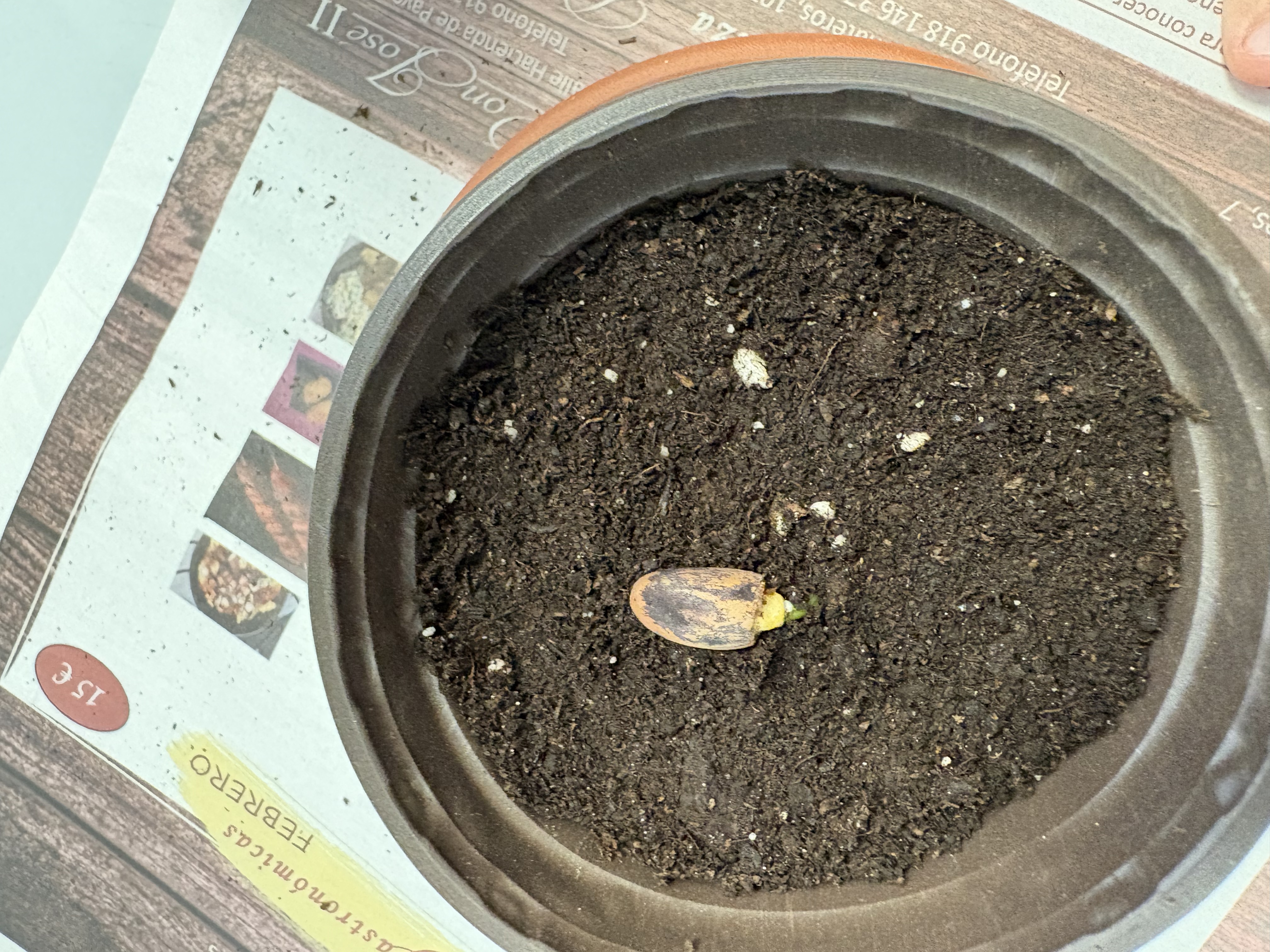 Después, nos han explicado de manera muy clara cómo es el proceso de plantación de un piñón. Primero han contado que tuvieron que abrir varios piñones y humedecerlos para activar la germinación. Una vez que los piñones comenzaron a germinar, los han traído a clase ya preparados, junto con sus macetas, platos y tierra, para que cada alumno y alumna pudiera tener el suyo propio.