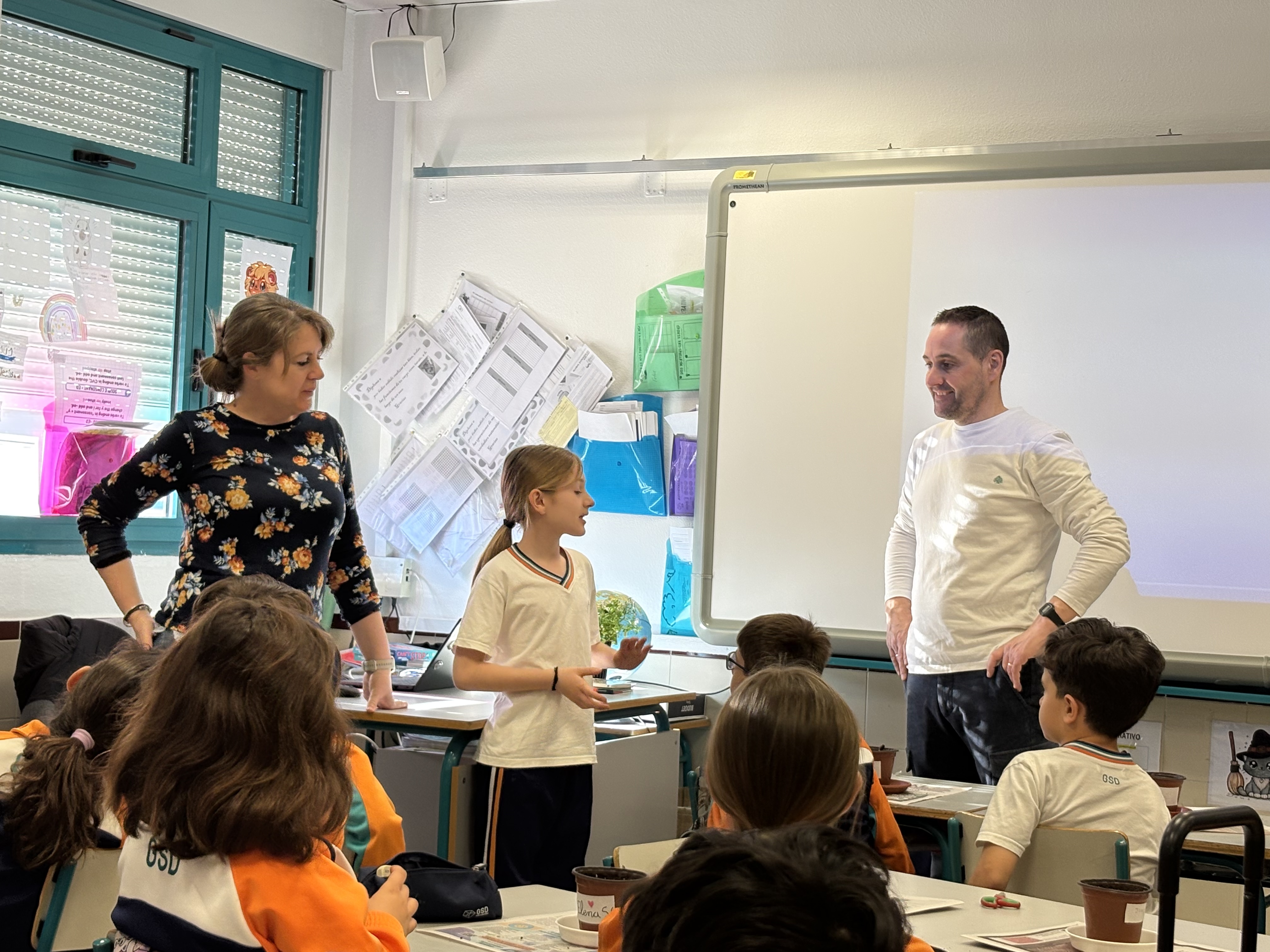 Hoy hemos tenido la suerte de recibir en clase a Pedro y Beatriz, los papás de Aroa de 3ºB, que han venido a compartir con nosotros una experiencia tan bonita como educativa. Su visita ha comenzado con un mensaje fundamental: la importancia de cuidar y salvar nuestro planeta. A través de ejemplos sencillos y cercanos, han ayudado a los niños y niñas a tomar conciencia de que cada pequeño gesto suma.