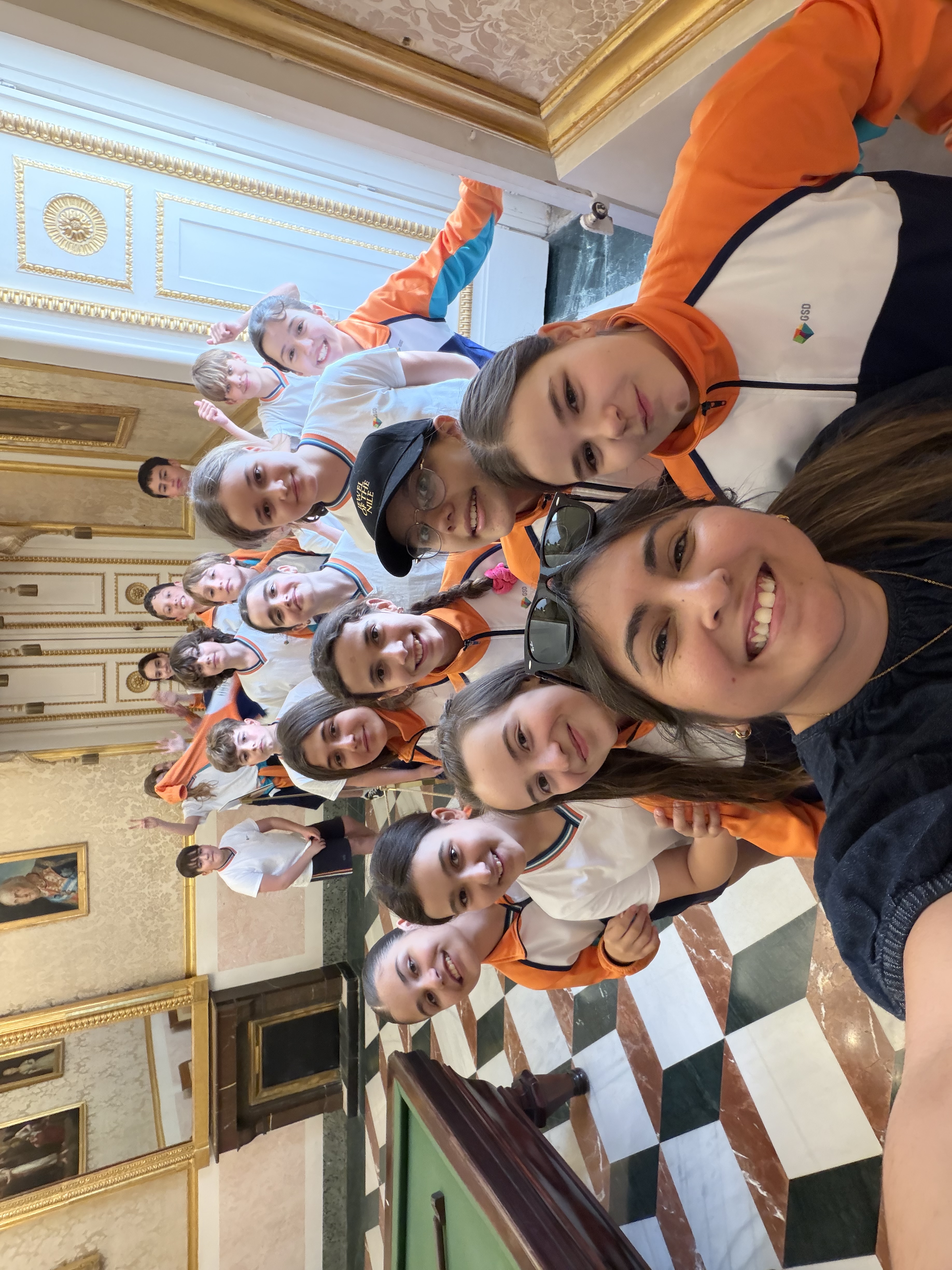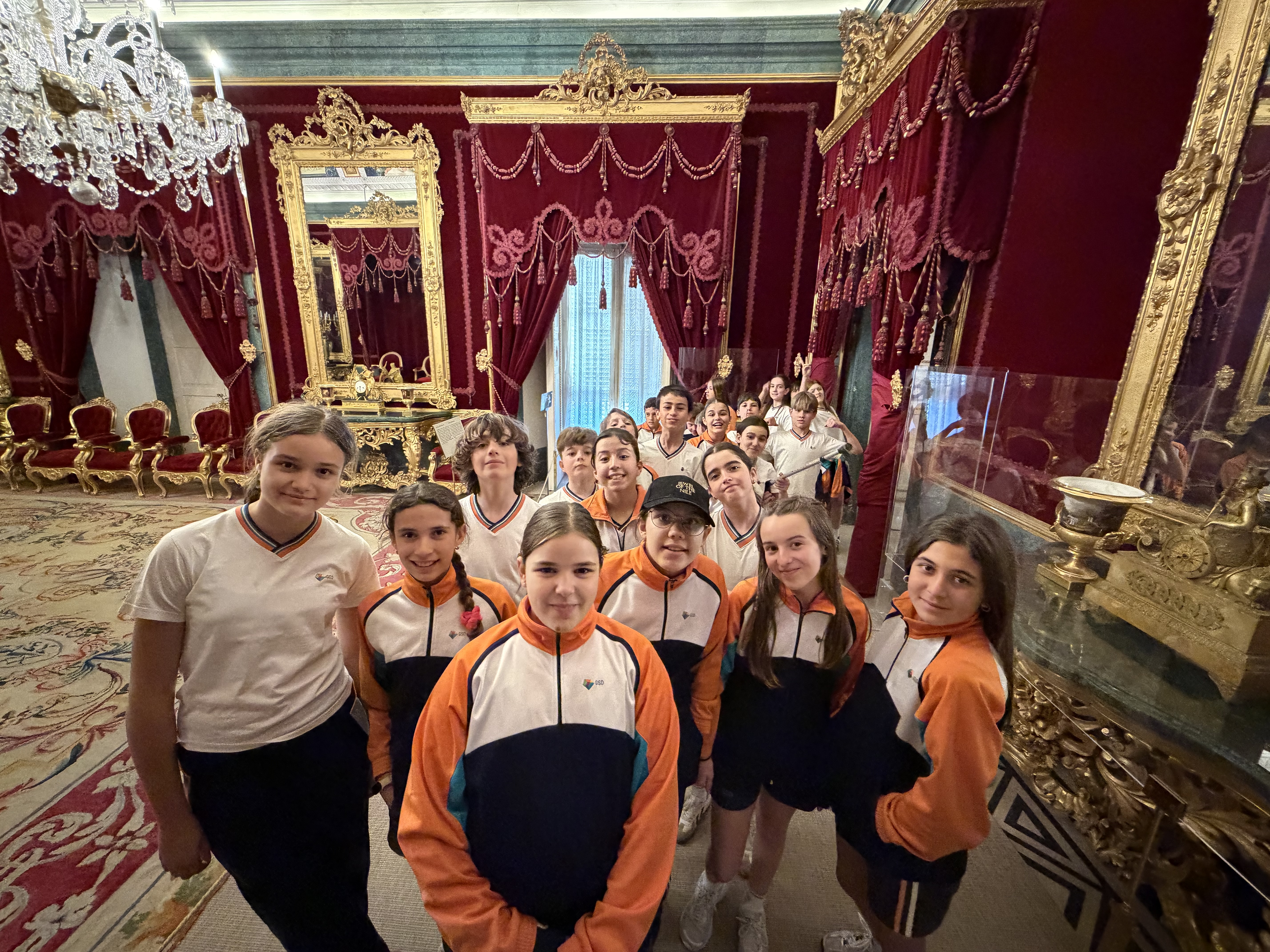 El alumnado de sexto de Primaria realizó una salida al Palacio Real de Aranjuez, una de las residencias históricas más emblemáticas de la monarquía española. Desde su llegada, pudieron contemplar la majestuosidad de los jardines, cuyas fuentes, paseos y rincones llenos de vegetación les trasladaron a otra época.