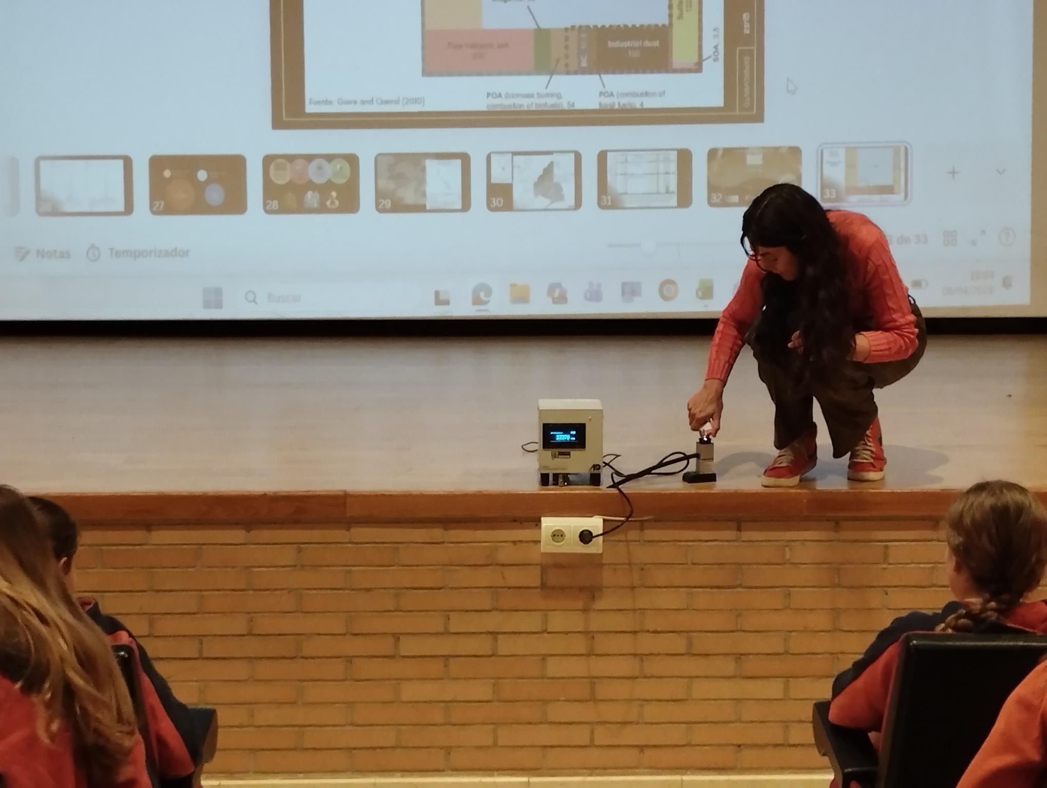 El 8 de abril, nuestro colegio tuvo el placer de recibir a Esther Coz, científica de la Unidad de Caracterización y Control de la Contaminación Atmosférica del CIEMAT. Vino a hablarnos de algo que todos usamos a diario… ¡el aire!