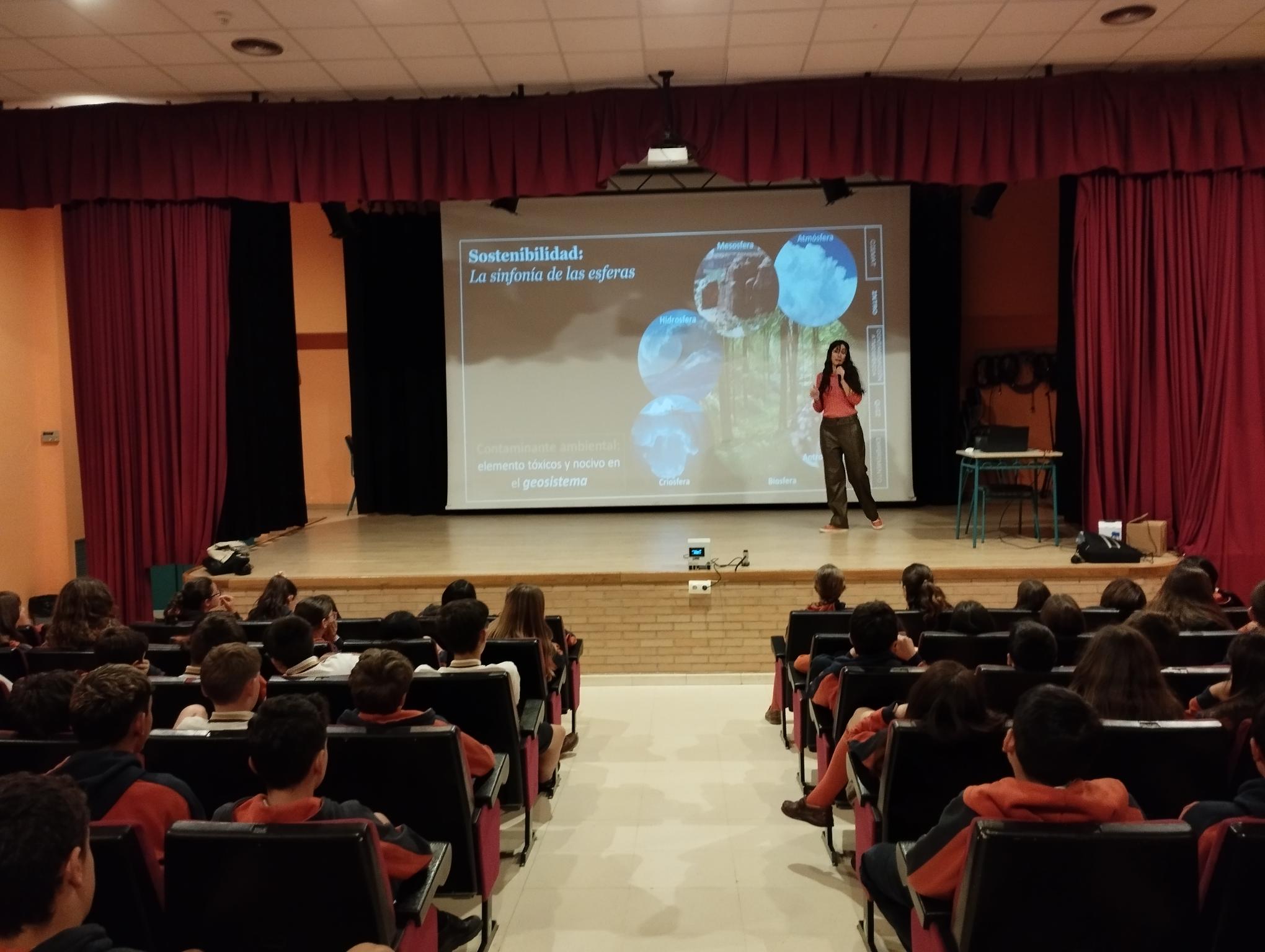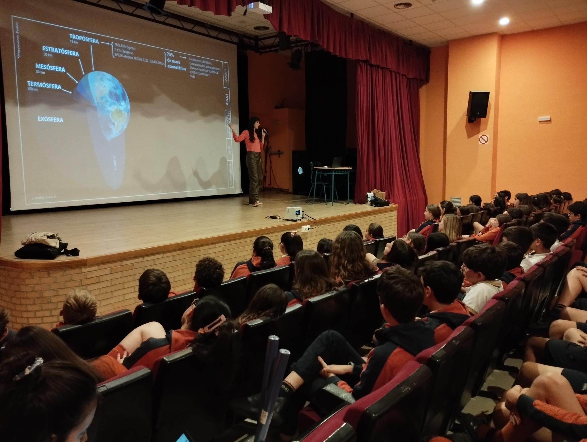 Durante la charla, nos contó qué es el CIEMAT y a qué se dedican allí, despertando la curiosidad de nuestro alumnado de 1ºESO por el mundo de la ciencia. Después, nos llevó a un viaje por la atmósfera: por qué es tan importante, cómo influye en nuestra vida y, sobre todo, qué podemos hacer para cuidarla entre todos.